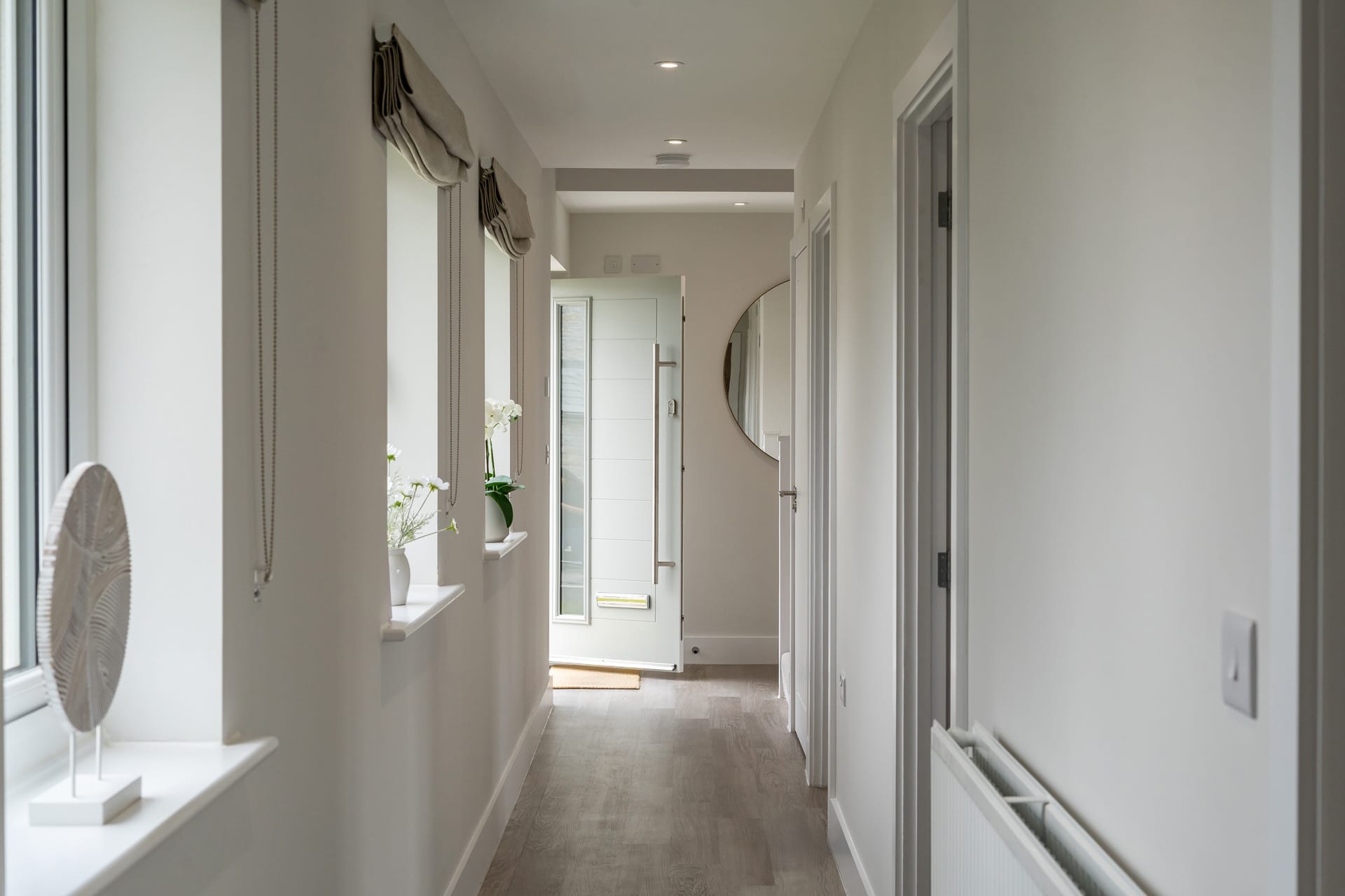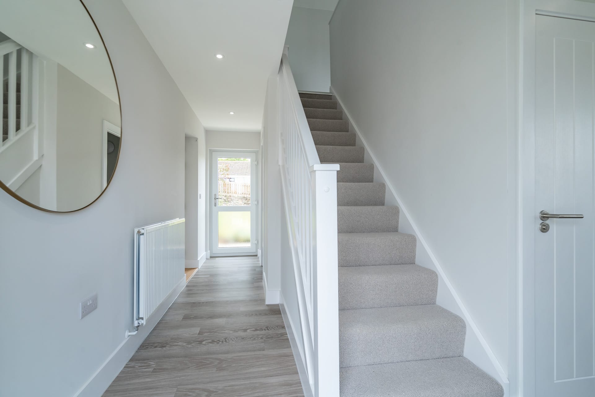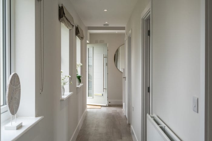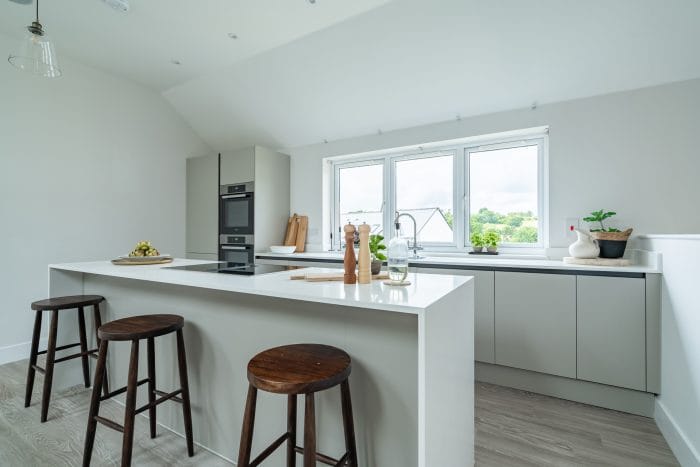 The first floor contains a large open plan kitchen, dining and family living space, with a Juliette balcony opening out to beautiful views, plus master bedroom suite. On the ground floor, there are 3 spacious bedrooms, a large family bathroom, plus a utility room and an integrated garage.